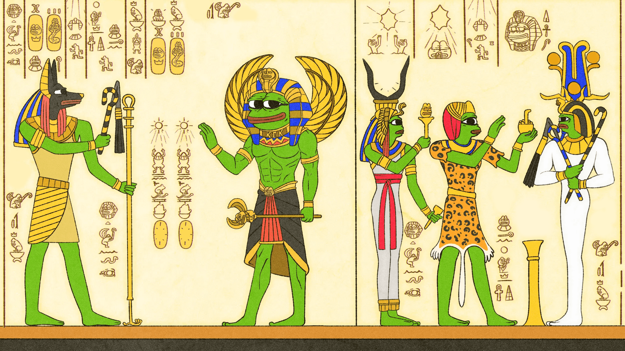 Centuries later, Kek was resurrected on the internet as the God of Memes — a perfect symbol for viral chaos, inside jokes, and the unpredictable magic that moves culture. The frog became his face, and “meme magic” his power.